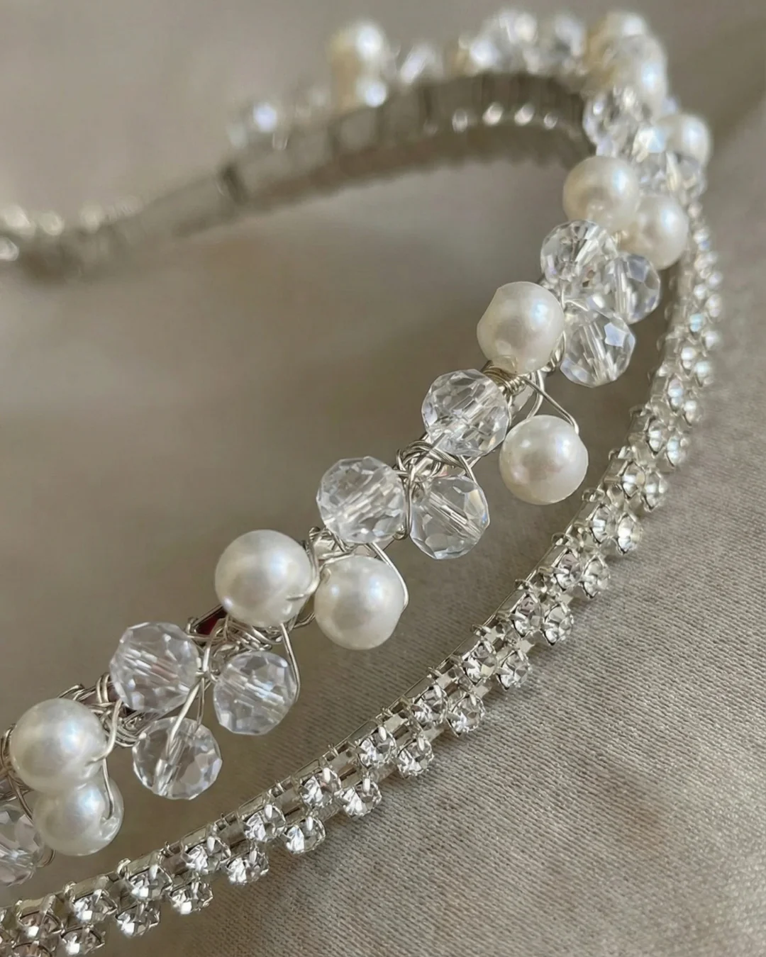 • Pearl & Crystal Embellishment – Ivory pearls paired with clear faceted crystals